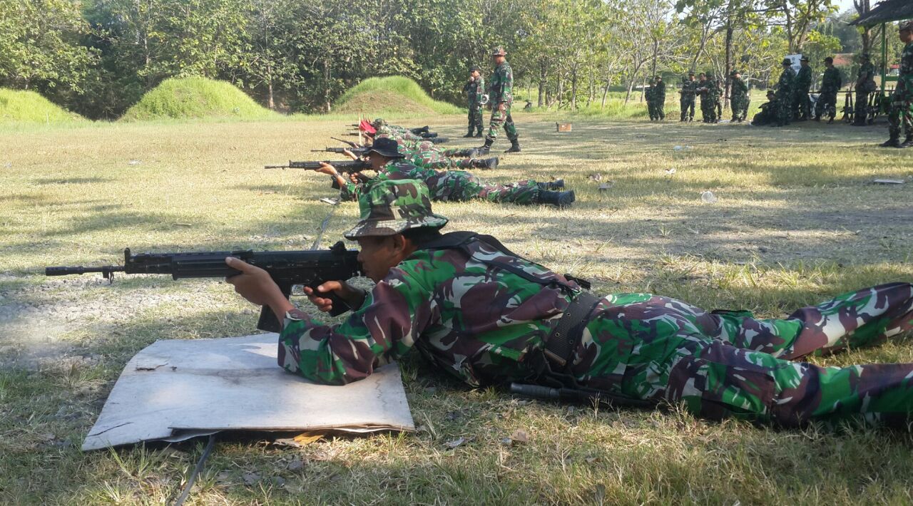 SOLO(LN) – Guna meningkatkan profesionalisme dan kemampuan menembak Prajurit, Dengan bertempat di Lapangan Tembak Grup 2 Kopassus Kandang Menjangan Kartasura,Solo Seluruh Anggota Kodim 0735/Surakarta melaksanakan Latihan Menembak Senjata Ringan,Kamis (10/8).