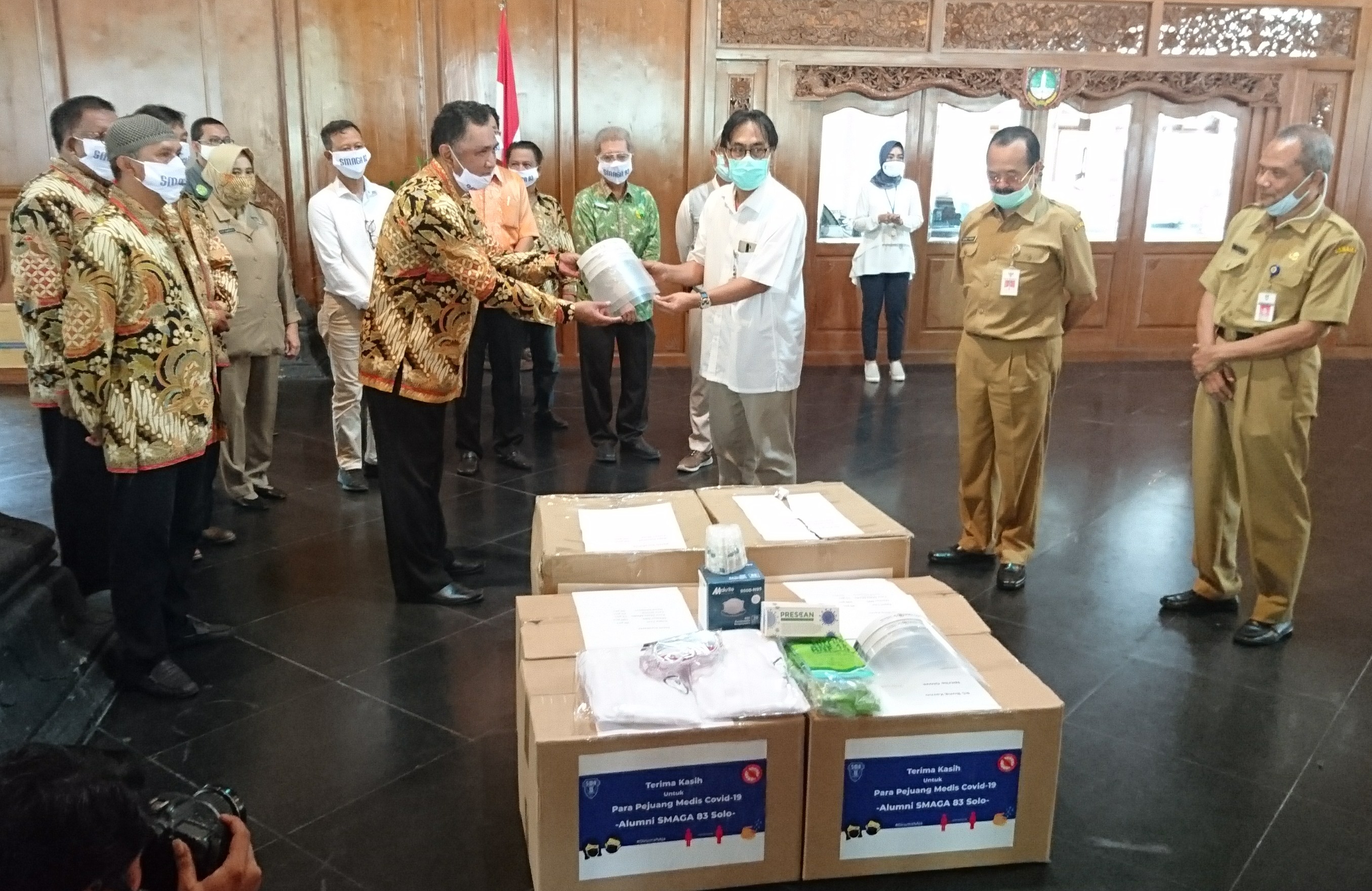 Secara simbolis APD diterima Wakil Walikota Solo kemudian bantuan diberikan kepada RS Dr Muwardi, RS UNS, RS Brayat Minulyo , RSUD  Surakarta, RS Bung Karno, RSUD Wonogiri dan RS Dr. Oen Kandang Sapi, selain itu alumni Smaga 83 juga telah berbagi kepada masyarakat yang terdampak wabah covid 19 ini dengan menyalurkan lebih dari 300 sembako untuk masyrakat terdampak di Solo dan juga alumni terdampak.