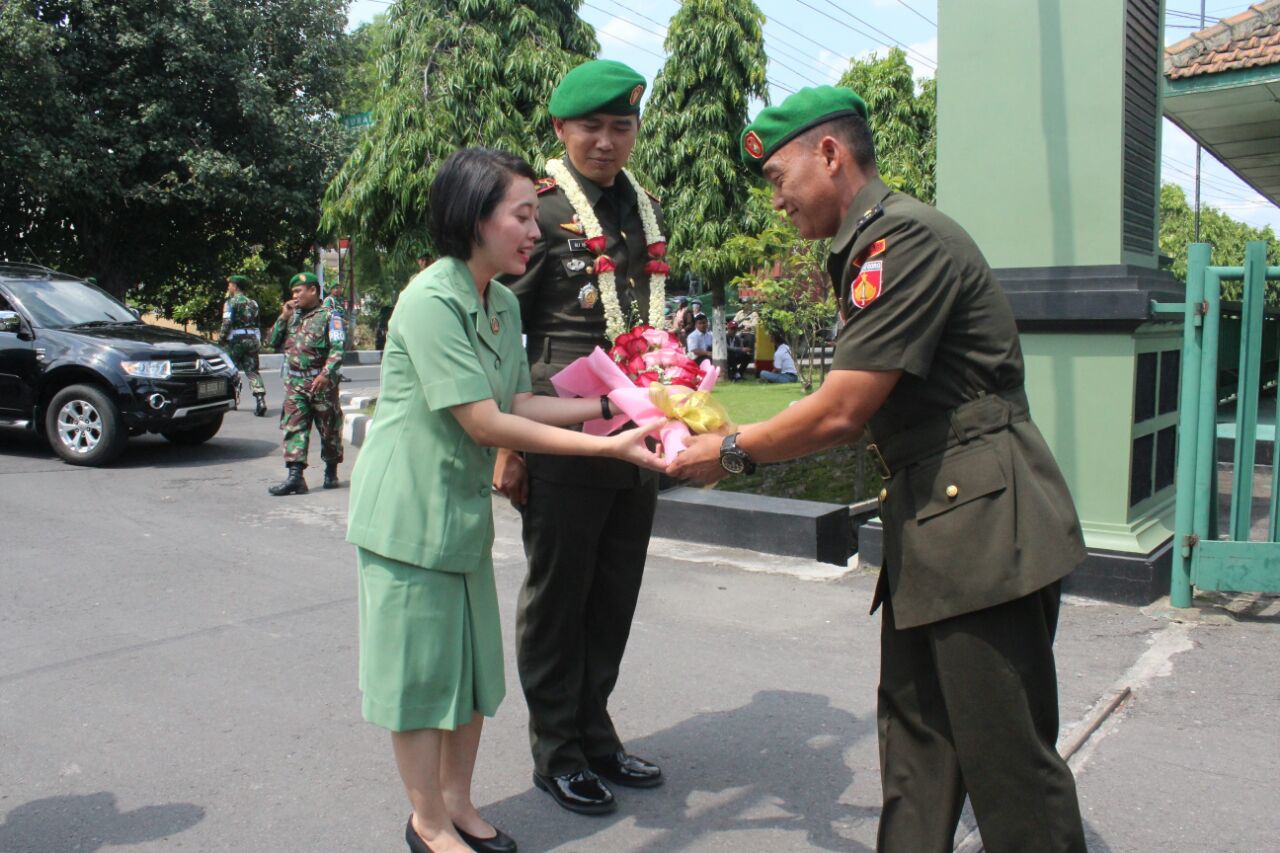 7 December 2017SOLO (LN) – Suasana berbeda tampak terlihat di Halaman Makodim Jln.A Yani Kelurahan Kerten Kecamatan Laweyan Surakarta, yang mana sebanyak 220 personil TNI,ASN,serta Persit Kodim 0735/Surakarta memadati halaman Makodim untuk mengikuti acara tradisi pelepasan Mantan Dandim Letkol inf Edwin Apria Candra S.E serta penerimaan Dandim yang baru Letkol inf Ali Akhwan S.E, Kamis(07-12-2017). Kepala Staf