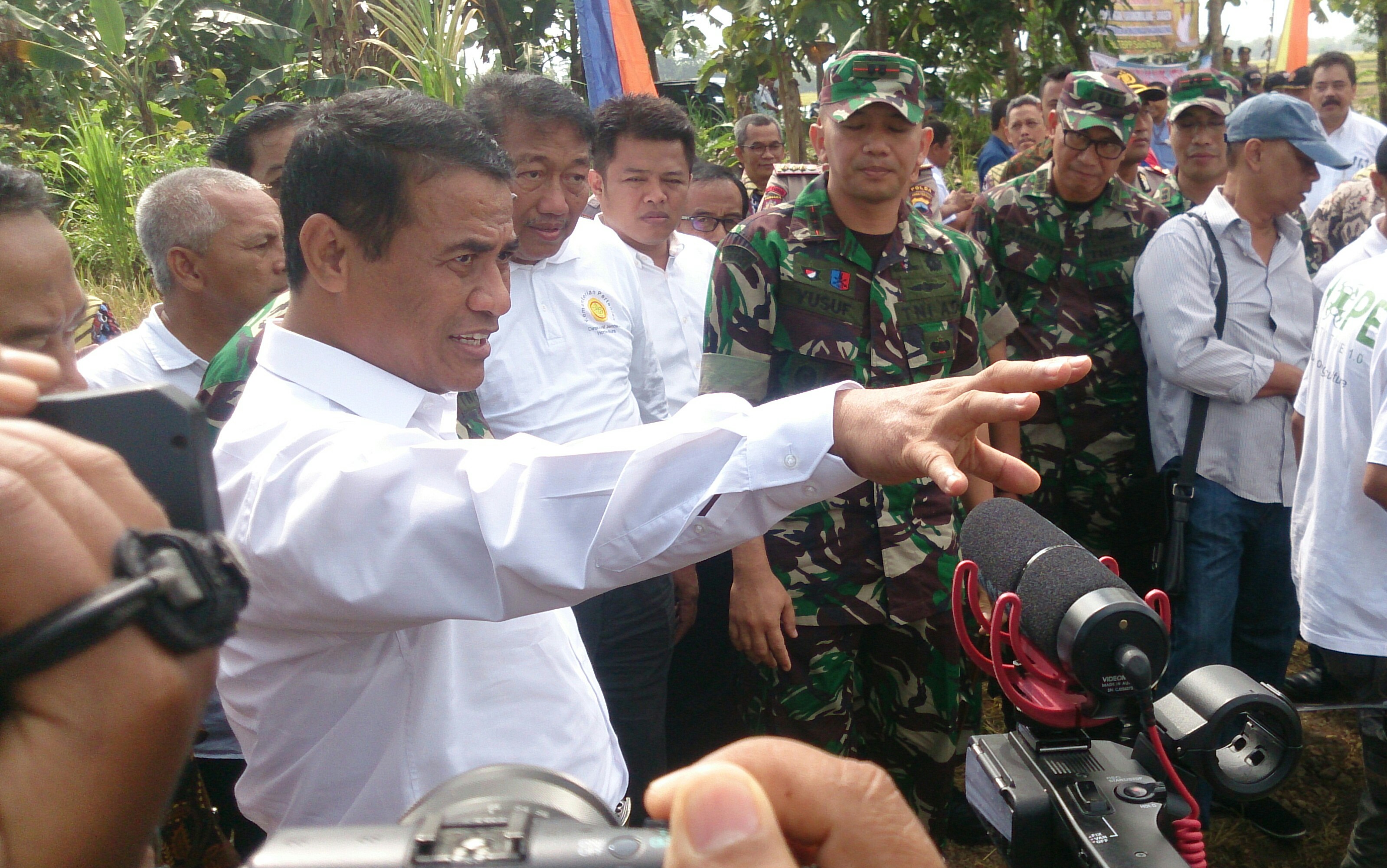 24 January 2018SRAGEN (LN) – Warga Sragen tolak Impor beras karena akan melakukan panen raya di Plumbon, Karangmalang, Sragen (24/1/2018) Dalam acara ini, Menteri Pertanian Andi Amran Sulaiman, Aster KASAD Mayjen Supartodi, wakil dari Ditjen Perdagangan Dalam Negeri Kemendag, Asisten Deputi Kementerian Koordinator Bidang Perekonomian Ilyas Payong, Dirjen Hortikultura Spudnik Sudjono, Ketua KPPU Syarkawi Rauf, Kasdam Pangdam