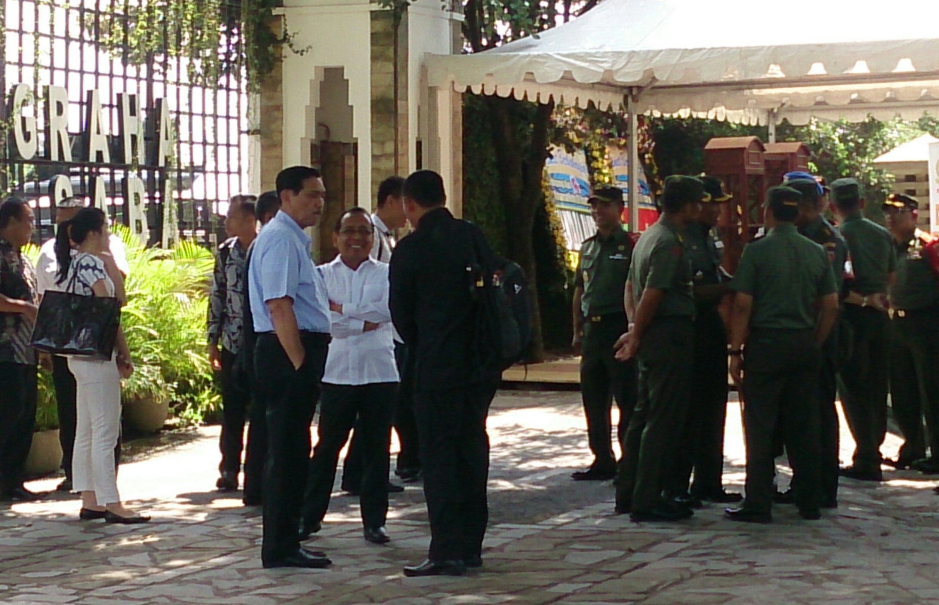 5 November 2017SOLO (LN) -Menko Maritim Luhut Panjaitan datangi geladi resik pernikahan putri Presiden Jokowi di Gedung Graha Saba Surakarta. Setelah berkoordinasi didepan pintu masu Gedung, Luhut dan Pratikno kemudian masuk ke Graha Saba Buana, yang steril dari wartawan. Hingga pukul 10.10 WIB, mereka masih di dalam gedung. Kahiyang Ayu akan menikah dengan Bobby Nasution pada Rabu