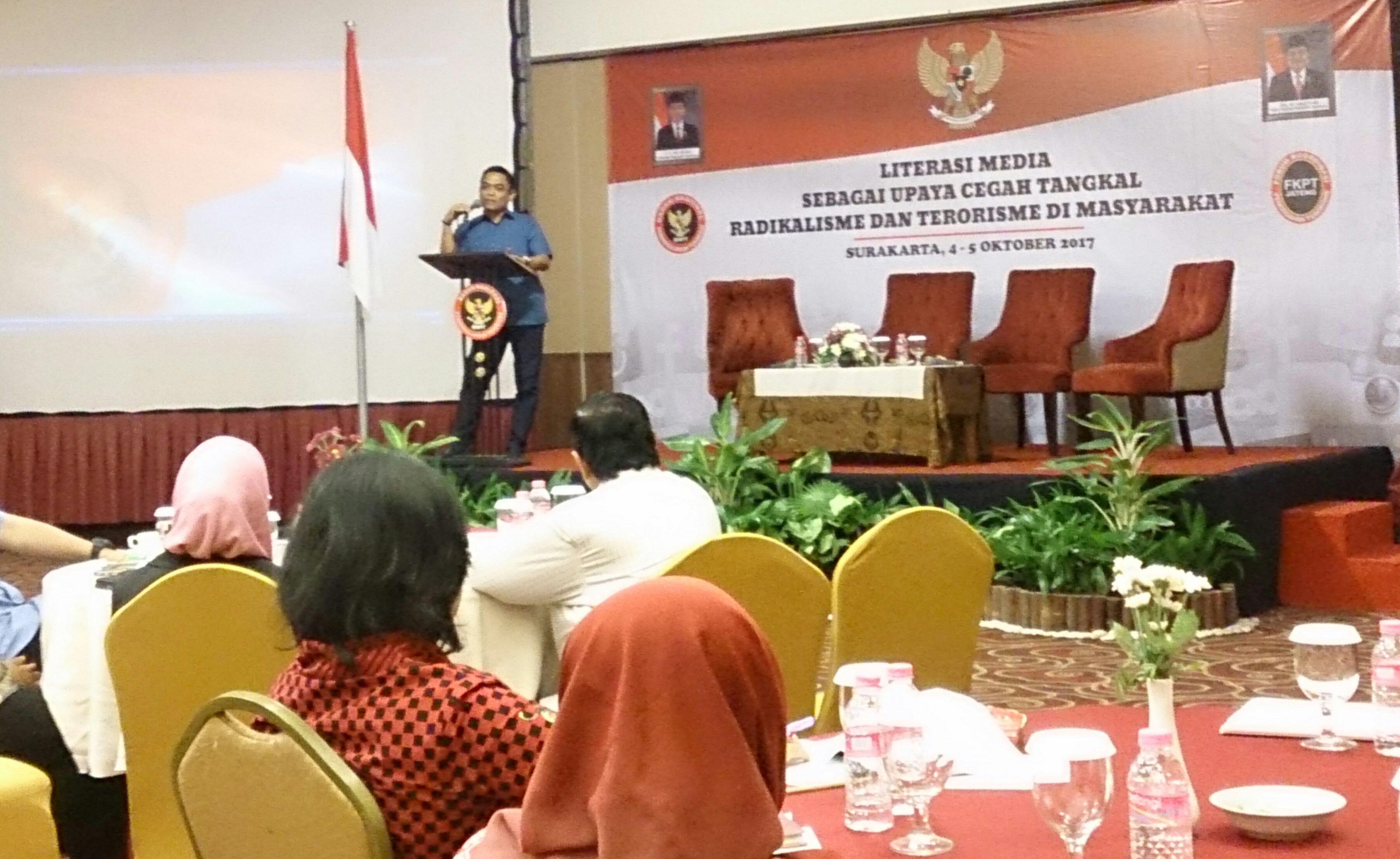 5 October 2017SOLO (LN) – Literasi Penanggulangan cegah radikalisme dan terorisme dibuka oleh Direktor BNPT Jawa Tengah Prof Irfan Idris MA. Pengetahuan tentang media harus kita kuasai, kalau belum menguasai maka jangan menyampaikan berita hoax karena media itu sangat luar biasa. BNPT Mampu mencegah radikalisme nasional terutama di Jawa Tengah, mengantisipasi terorisme dengan cara mengendalikan penyebaran berita