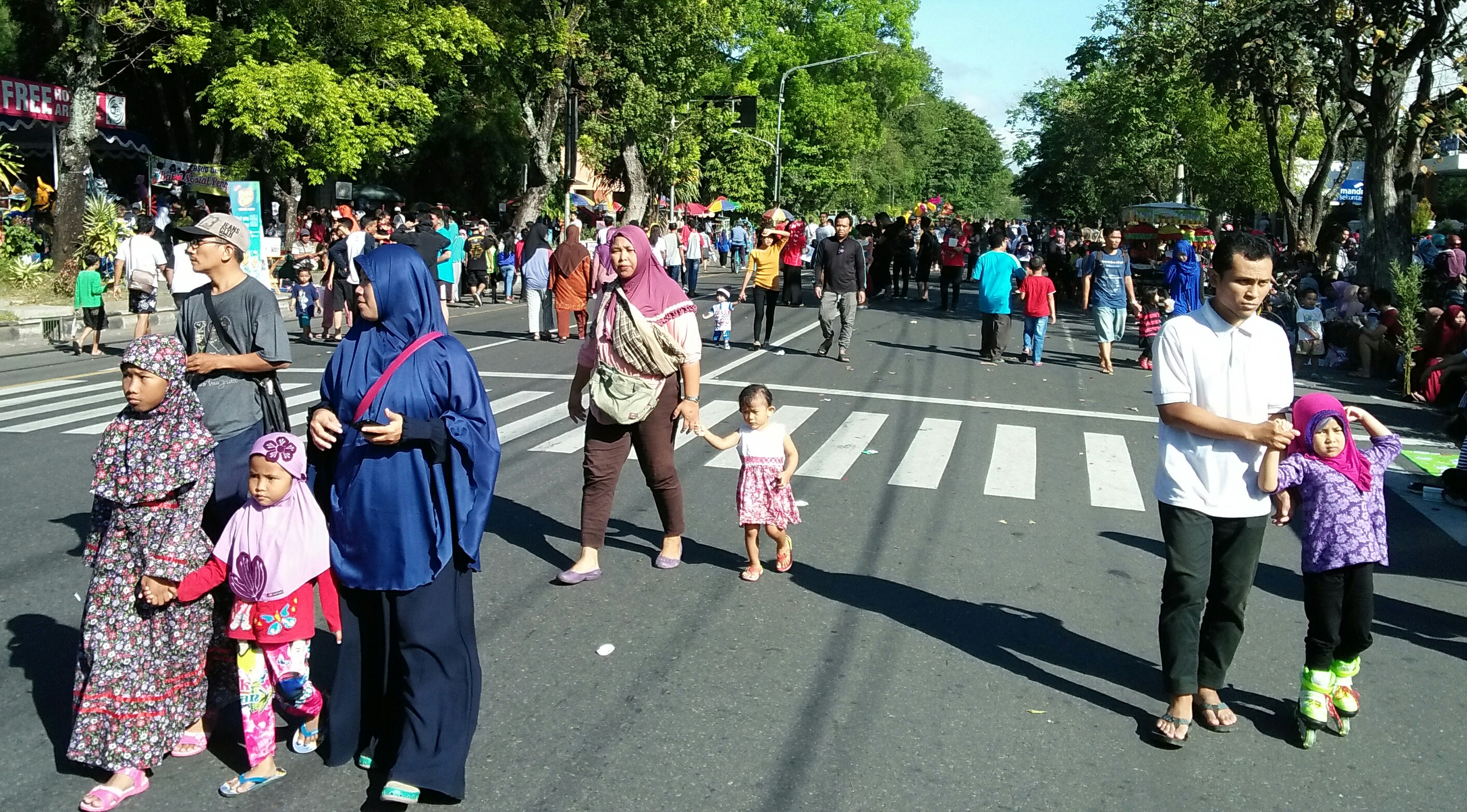 9 September 2017SOLO (LN) – Awal dibukanya car free day (CFD) Jalan Slamet Riyadi nampaknya dinantikan oleh warga Solo. Pasalnya, selama tiga pekan kawasan CFD Jalan Slamet Riyadi ditutup sementara untuk digunakan untuk jalur pemudik. “Ya kangen aja, gak kesini hampir tiga minggu,” terang salah seorang warga Purwosari, Yuliani (27). Beserta suami dan dua anaknya, Yuliani nampak