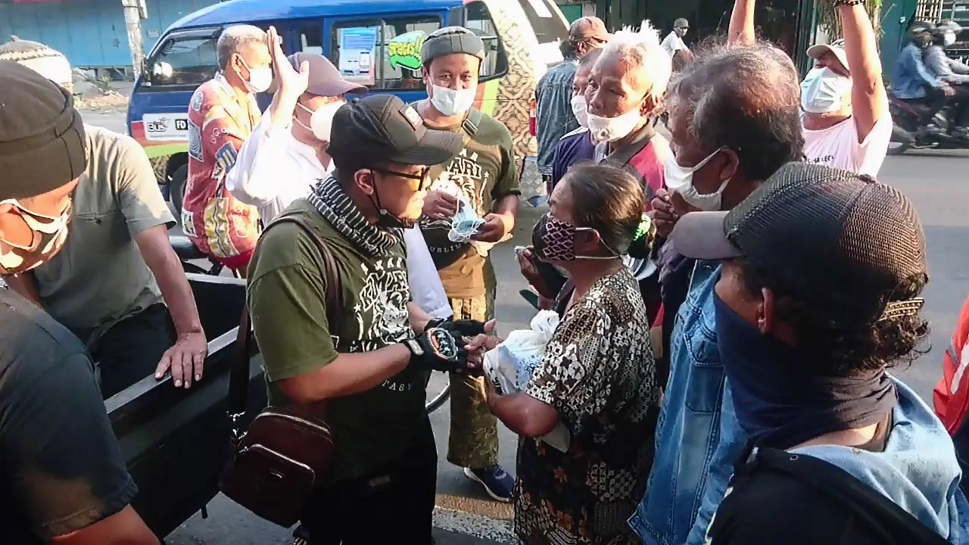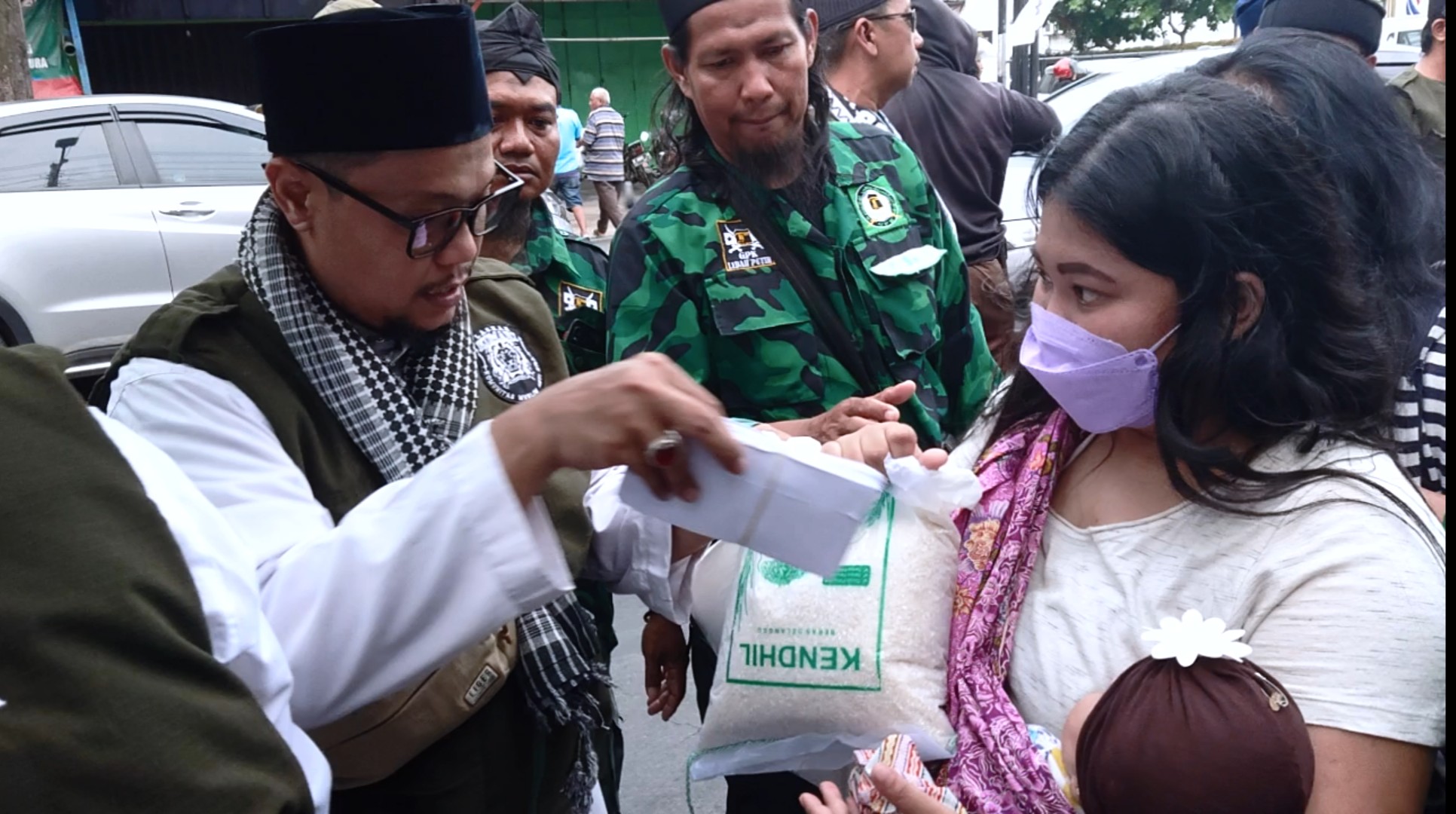 Mantan preman yang tergabung dalam komunitas muslim anti riba (komari) bagikan ratusan paket sembako